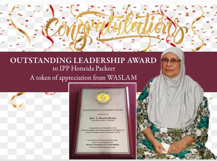 Outstanding Leadership Award to IPP Honeida Packeer A token of appreciation from WASLAM